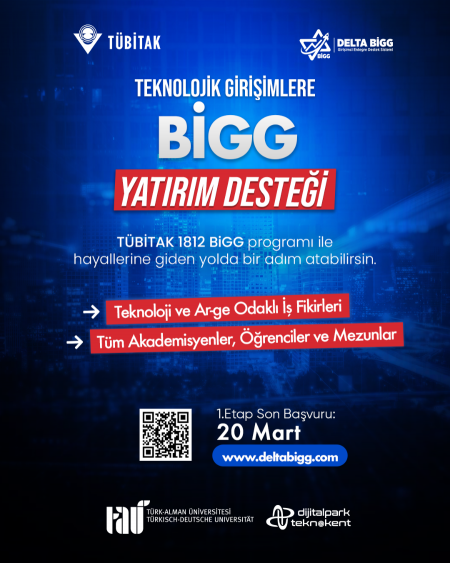 TÜBİTAK tarafından yürütülen 1812 BİGG – Bireysel Genç Girişim Yatırım Programı kapsamında, teknoloji ve Ar-Ge odaklı iş fikirlerine yatırım desteği sağlanmaktadır.